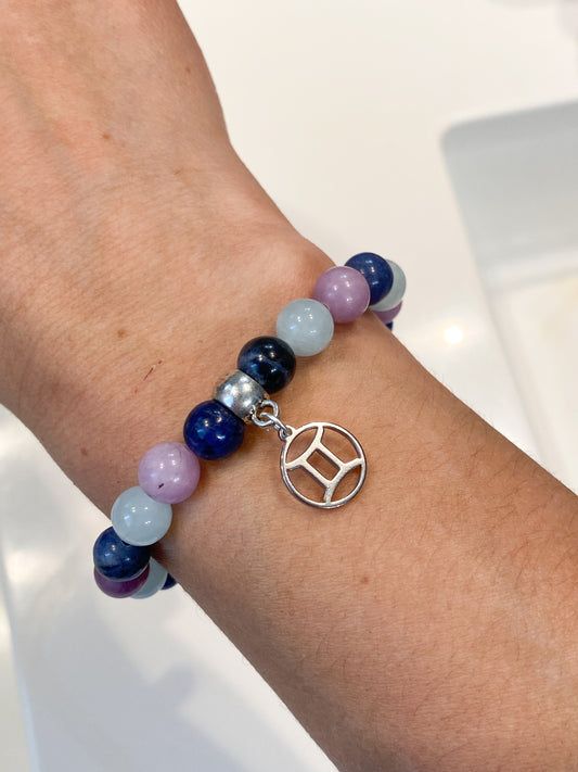 Bracelet gémeaux en pierres naturelles Lapis Lazuli, Aigue marine et Sodalite