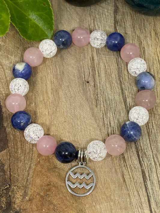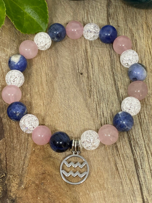 Bracelet en pierres naturelles Cristal de roche, Quartz rose et Sodalite " Spécial Verseau "