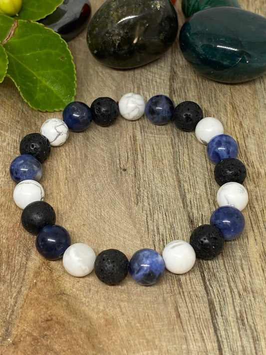 Bracelet élastique en pierres naturelles Howlite, Pierre de lave et Sodalite " Spécial Verseau "