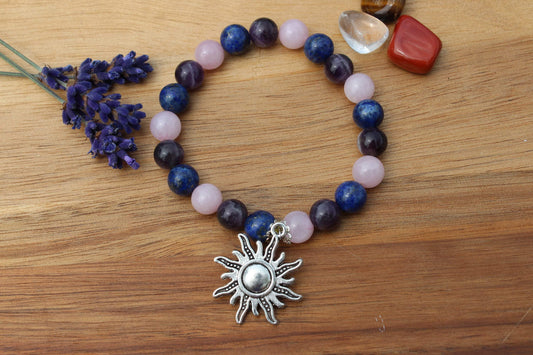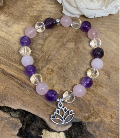 Bracelet pierre naturelle anti stress en Améthyste, Quartz rose et Cristal de roche