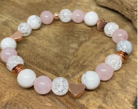 Bracelet pierres naturelles en Quartz rose, howlite et Cristal de roche
