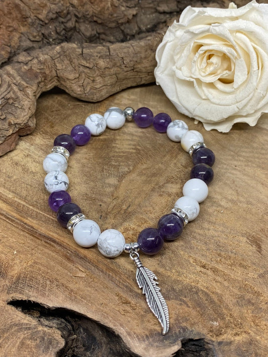 Bracelet en pierres naturelles Howlite et Améthyste " spécial calme "