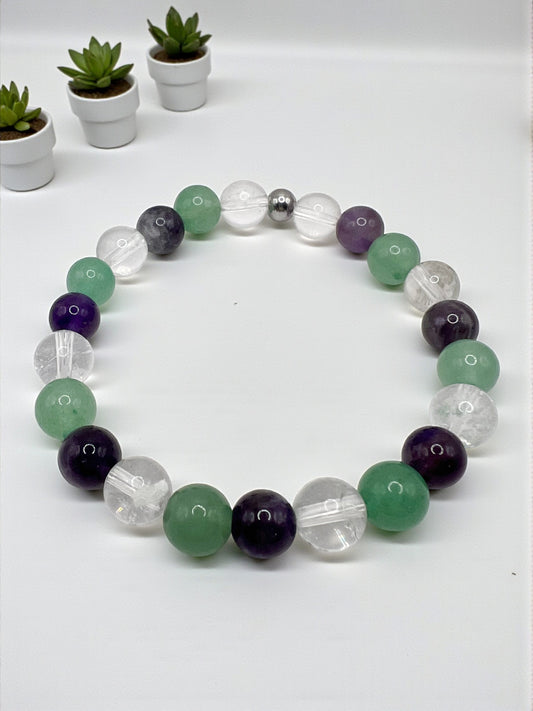 Bracelet en Pierres Naturelles Aventurine, Améthyste & Cristal de Roche – Paix Intérieure & Harmonie Énergétique