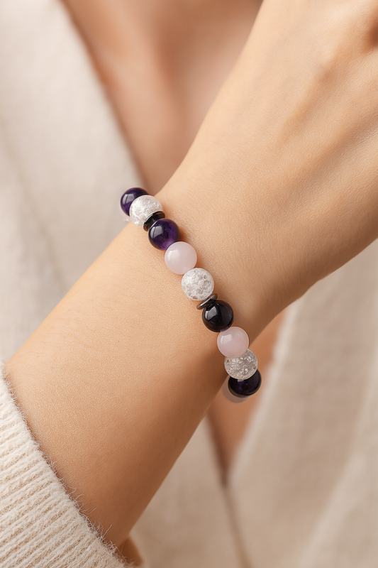 ✨ Bracelet Équilibre & Sérénité – Cristal de Roche, Quartz Rose & Améthyste
