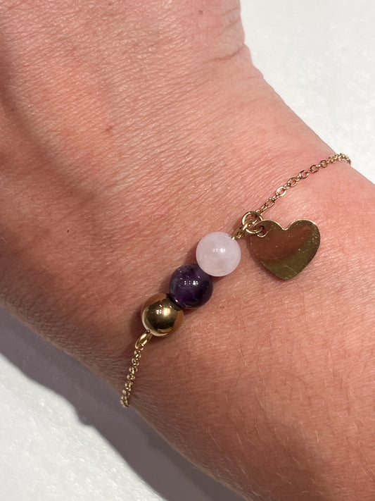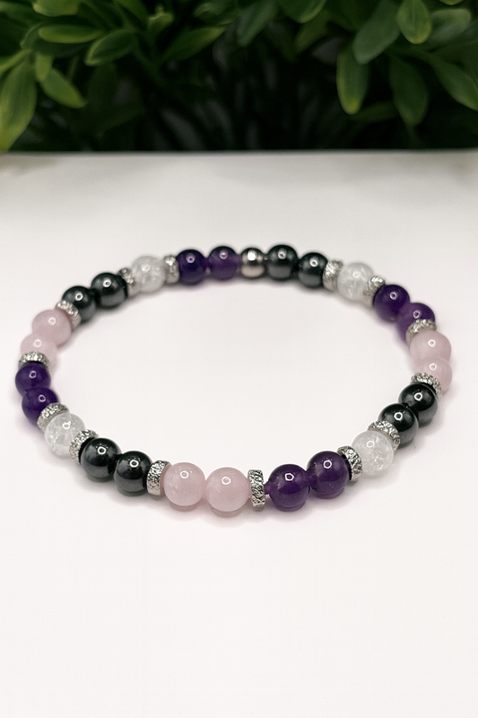 💗 Bracelet Cœur Apaisant – Quartz Rose, Améthyste & Hématite pour un Esprit Sereit Anxiété en Quartz Rose, Améthyste et Hématite "Cœur Apaisant"