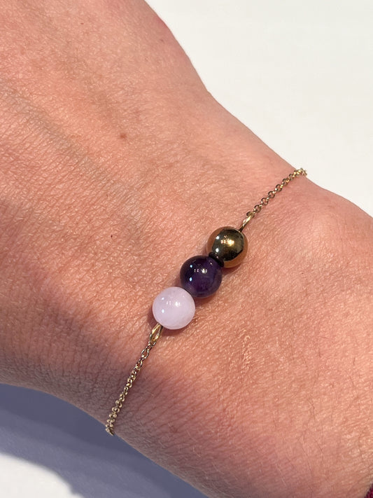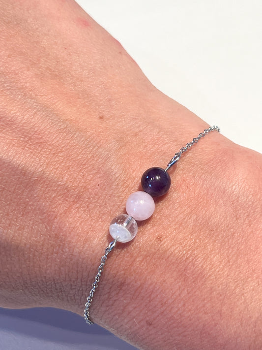 Bracelet énergétique en quartz rose, cristal de roche et améthyste : apaisement et harmonie