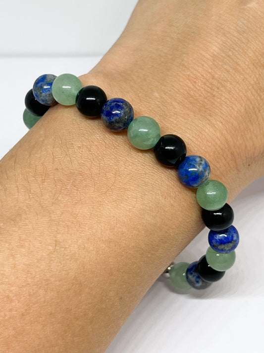 💙 Bracelet Apaisant en Aventurine, Lapis-Lazuli & Obsidienne – Harmonie & Clarté