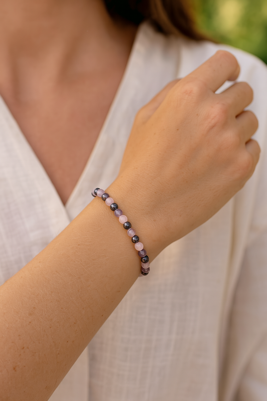 🌸 Bracelet Apaisant – Quartz Rose, Améthyste & Hématite pour l’Équilibre Intérieur