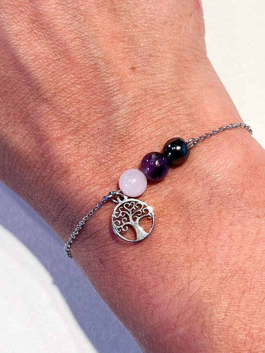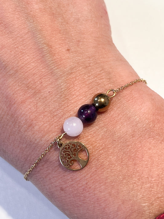 Bracelet Bien-Être Arbre de Vie en Quartz Rose et Améthyste "Arbre de Vie & Sérénité"