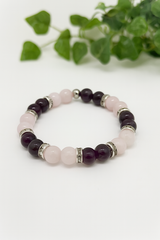 Bracelet Lithothérapie en Quartz Rose et Améthyste – Soulagez le Stress Naturellement