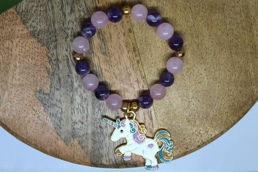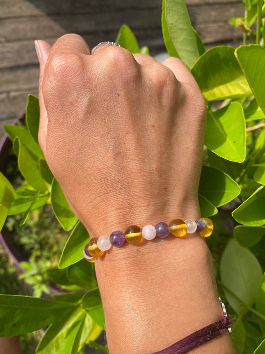 Bracelet enfant en Quartz rose, Améthyste et Ambre : Renforcez la confiance en soi avec cette magnifique parure énergétique