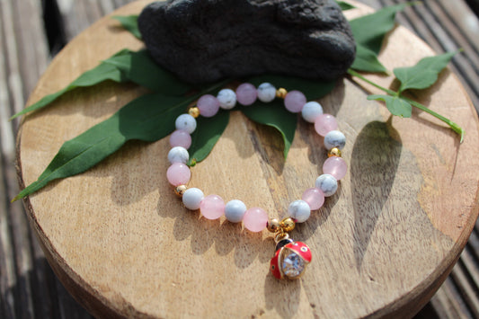 Bracelet élastique en pierres naturelles Quartz rose et Howlite