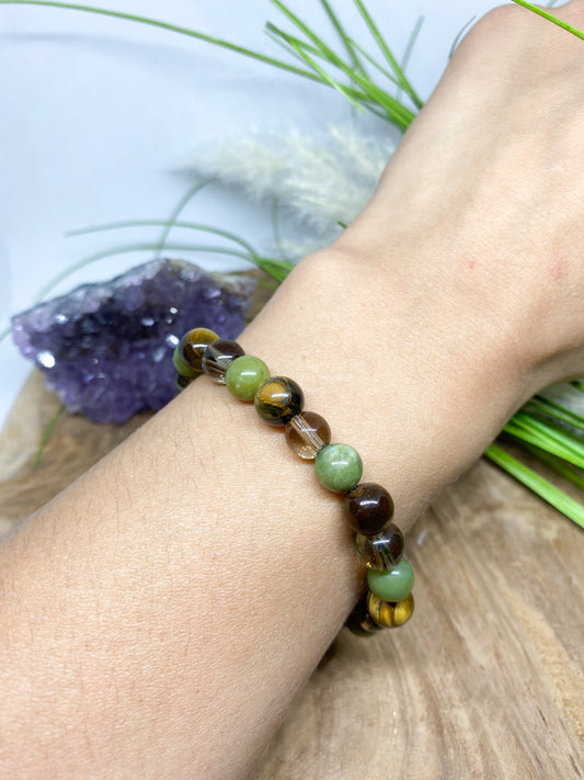 Bracelet en pierres naturelles Jade néphrétique, œil de tigre et Quartz fumé