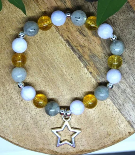Bracelet Lithothérapie en pierres naturelles Citrine , Améthyste et Labradorite