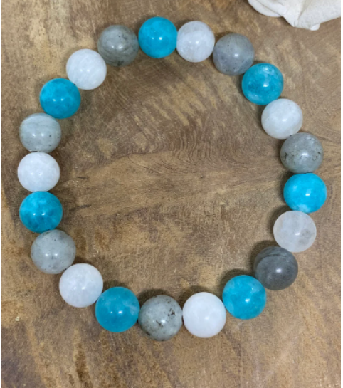 Bracelet Lithothérapie en pierres naturelles Amazonite, Pierre de lune et Labradorite