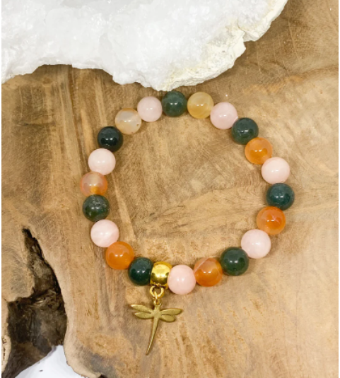 Bracelet en pierres naturelles Agate mousse , Pierre de soleil et Cornaline