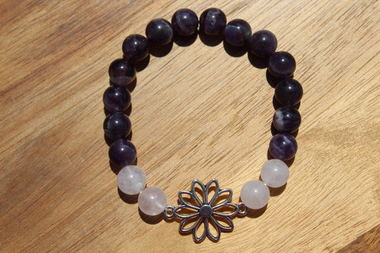 Bracelet en pierres naturelles Améthyste, Quartz rose " Spécial Sérénité "