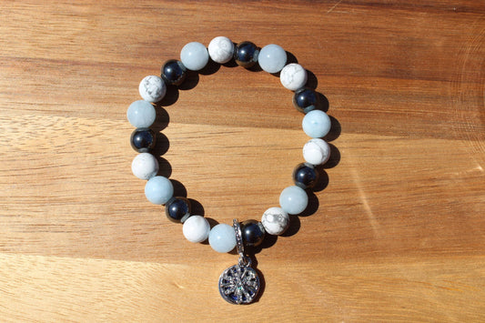 Bracelet en pierres naturelles Aigue marine, Howlite et Hématite