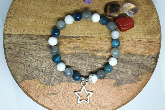 Bracelet pierres naturelles en Apatite , Labradorite et Howlite
