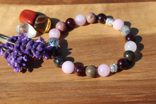 Bracelet pierres naturelles en Quartz rose, Rhodonite , Grenat