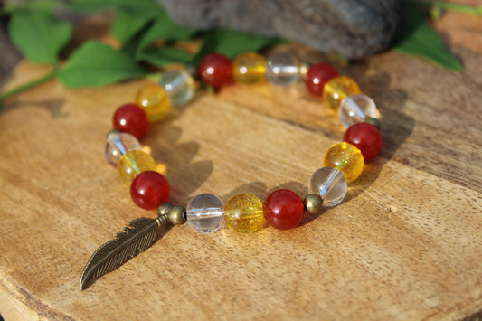 Bracelet en pierres naturelles en Citrine , Cornaline et Cristal de Roche
