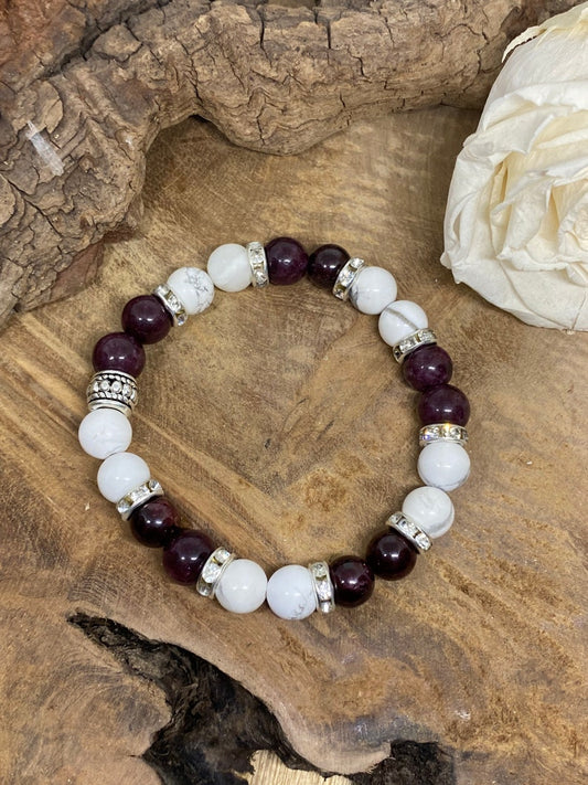 Bracelet en pierres naturelles avec Grenat et Howlite