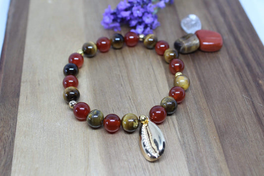 Bracelet pierres naturelles en Cornaline , Agate , Œil de tigre " Confiance en soi"