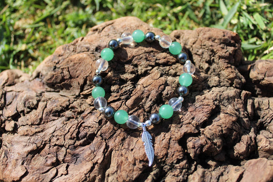 Bracelet en pierres naturelles Aventurine , Hématite , Cristal de Roche "Spécial Positivité et volonté "