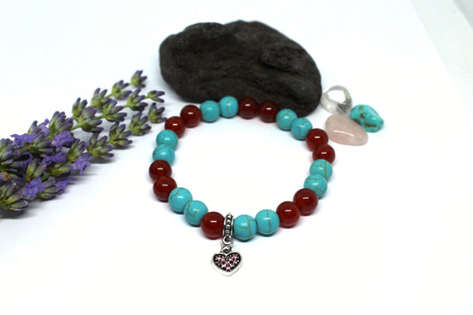 Bracelet en pierres naturelles Cornaline et Howlite Turquoise