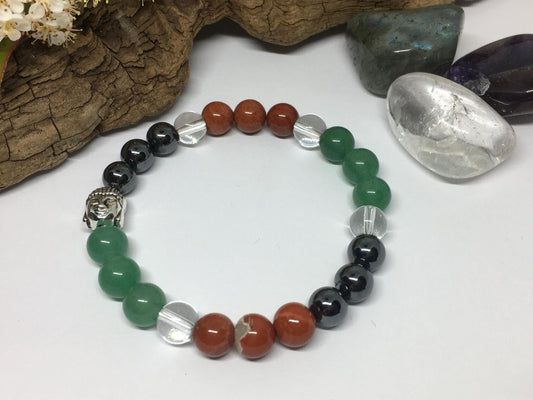 Bracelet en pierres naturelles Jaspe Rouge , Hématite, Aventurine, Cristal de Roche