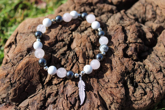 Bracelet en pierres naturelles, Hématite, Howlite , Quartz Rose "Spécial Calme et Sérénité "