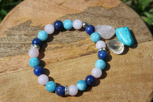 Bracelet en pierres naturelles Aigue marine, Quartz rose, Lapis lazuli "Spécial Burn-out"