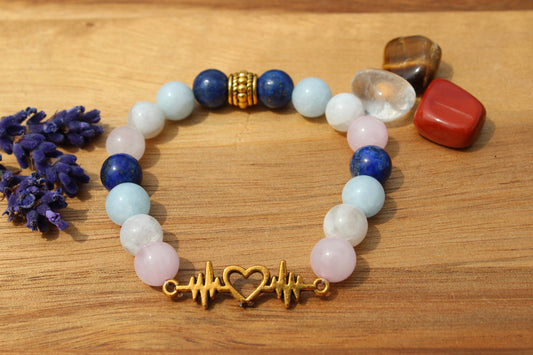 Bracelet élastique en pierres naturelles Aigue marine, Pierre de lune , Lapis lazuli et Quartz rose " Spécial Grossesse "