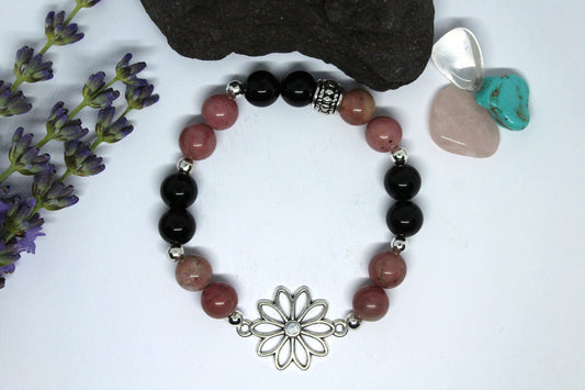 Bracelet en pierres naturelles , Rhodochrosite et Obsidienne noir