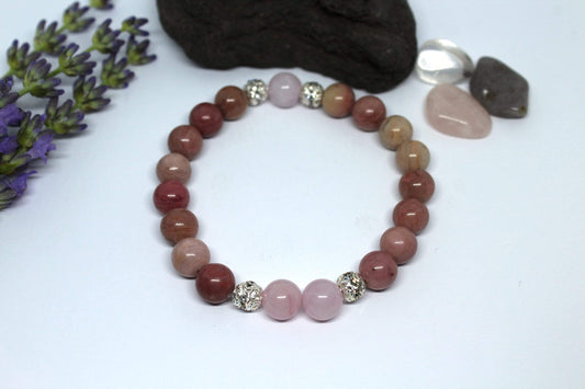 Bracelet en pierres naturelles Rhodochrosite et Quartz rose