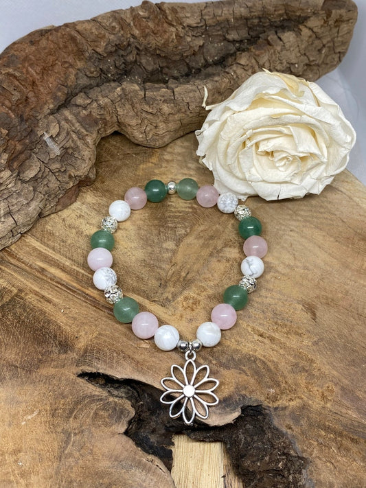 Bracelet en pierres naturelles Aventurine, Quartz Rose, Howlite " sérénité "