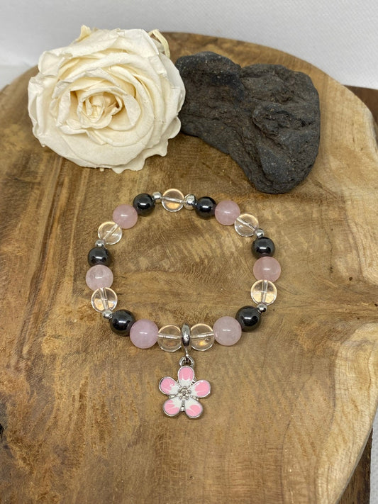 Bracelet en pierres naturelles Hématite , Quartz Rose , Cristal de Roche