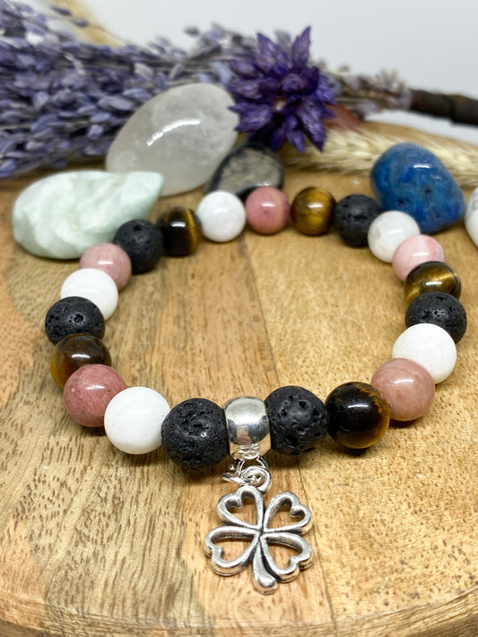 Bracelet en pierres naturelles Rhodochrosite , Pierre de lune , Œil de tigre et Pierre de lave