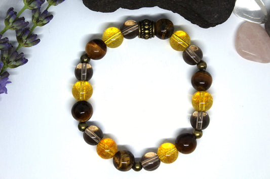 Bracelet pierres naturelles en Citrine , Quartz fumé , Œil de tigre