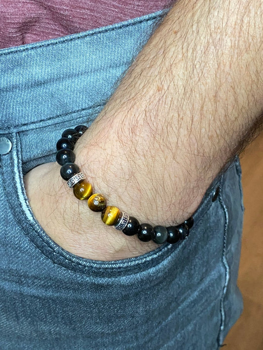 Bracelet homme en pierres naturelles Œil du tigre, Obsidienne