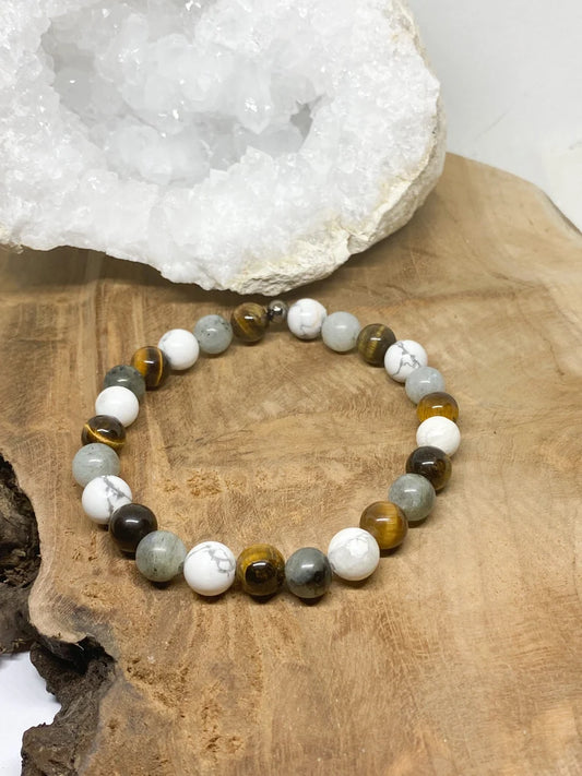 Bracelet en pierres naturelles Labradorite, œil de tigre et Howlite