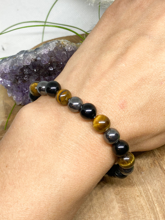 Bracelet en pierres naturelles, Œil de tigre, Obsidienne noire et hématite " spécial protection"