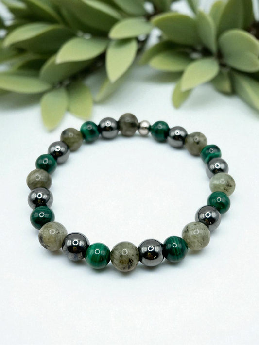 Bracelet Anti-Douleur en Pierres Naturelles – Malachite, Labradorite & Cornaline