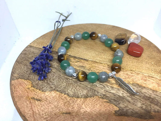 Bracelet en pierres naturelles Aventurine , Labradorite, Œil du tigre " Spécial Protection"