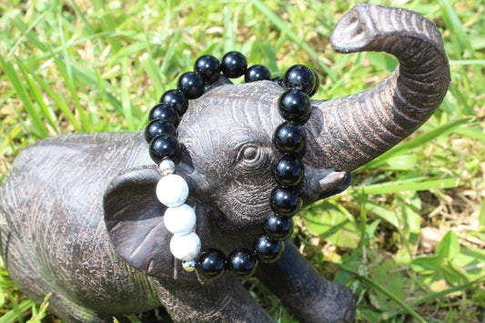 Bracelet élastique en pierres naturelles , Obsidienne , Howlite