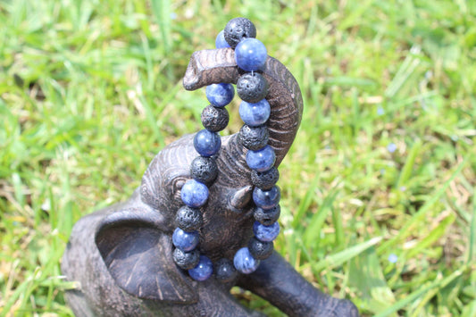Bracelet en pierres naturelles homme en Sodalite, Pierre de lave
