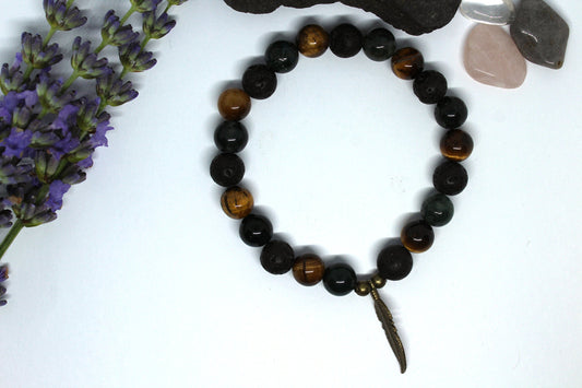 Bracelet en pierres naturelles avec Agate mousse, œil de tigre et pierre de lave