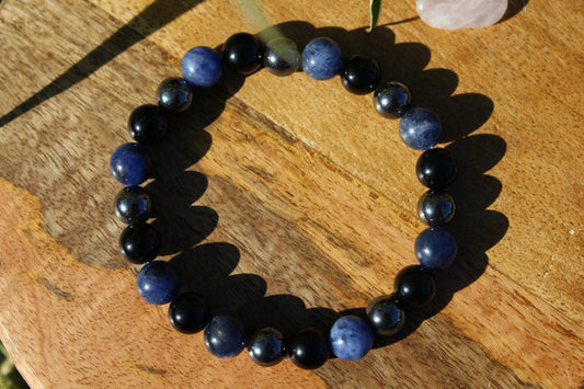 Bracelet en pierres naturelles Hématite , Sodalite , Obsidienne