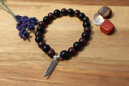 Bracelet en pierres naturelles en Grenat et Obsidienne noir
