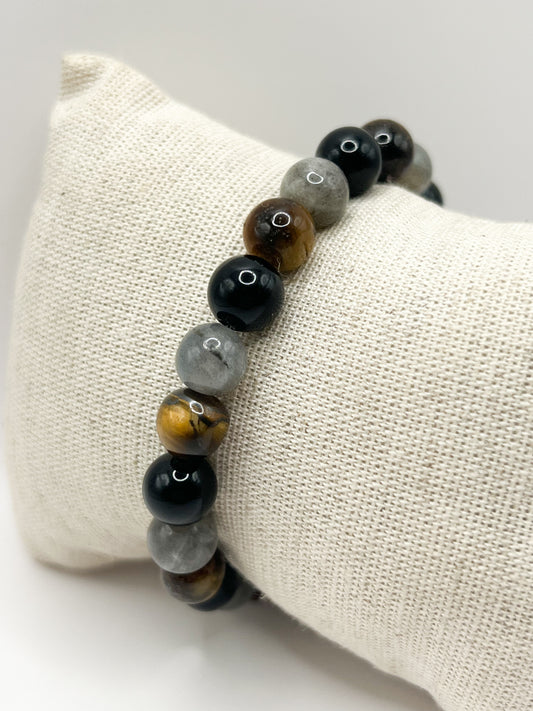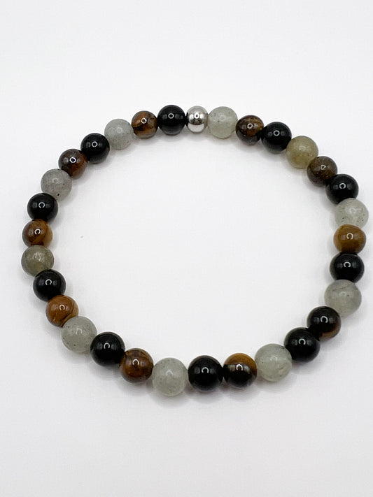 Bracelet Protection Énergétique – Obsidienne Noire, Œil de Tigre & Labradorite